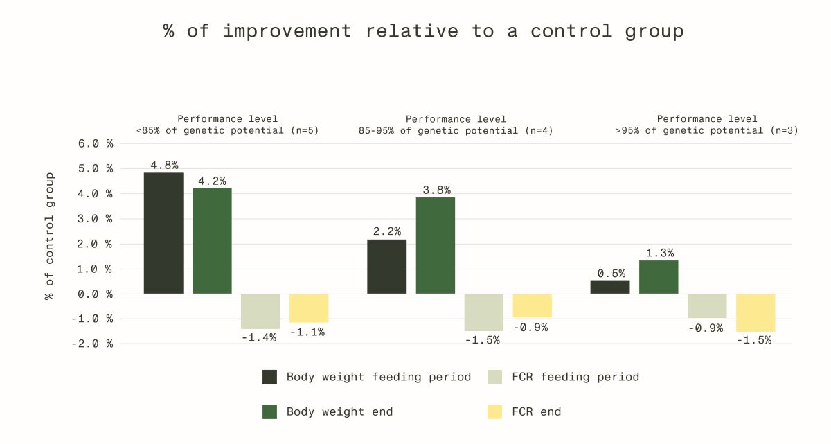 Higher nutrient availability, protein digestion, immune and gut health lead to better growth performance with lower inputs, improving not only body weight gain, but also feed conversion rate. The performance improvements when formulating for critical periods occur in different types of operations, improving performance and profitability.